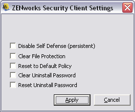 Clears the password that is required for uninstalling the Security Client. After the password is cleared, the Security Client can be uninstalled without a password prompt. Use this option when the uninstall password fails or is lost.
