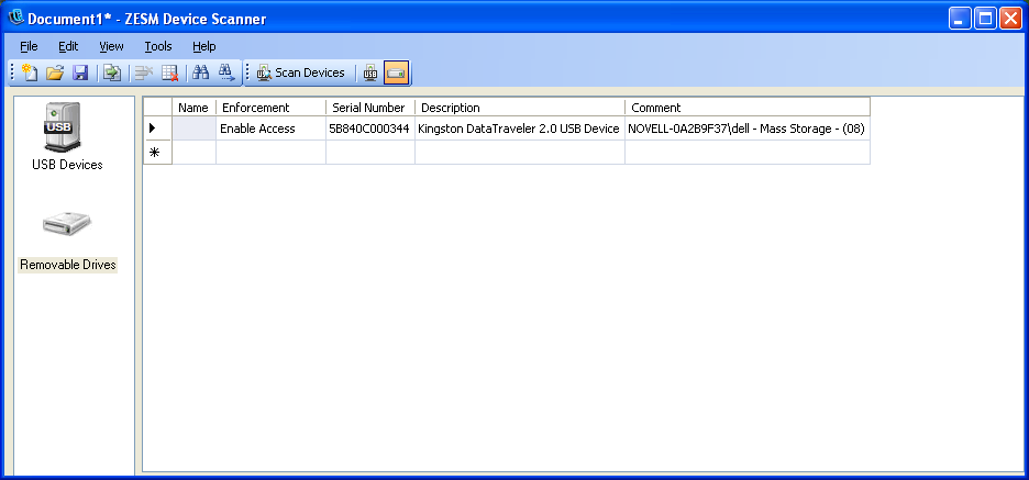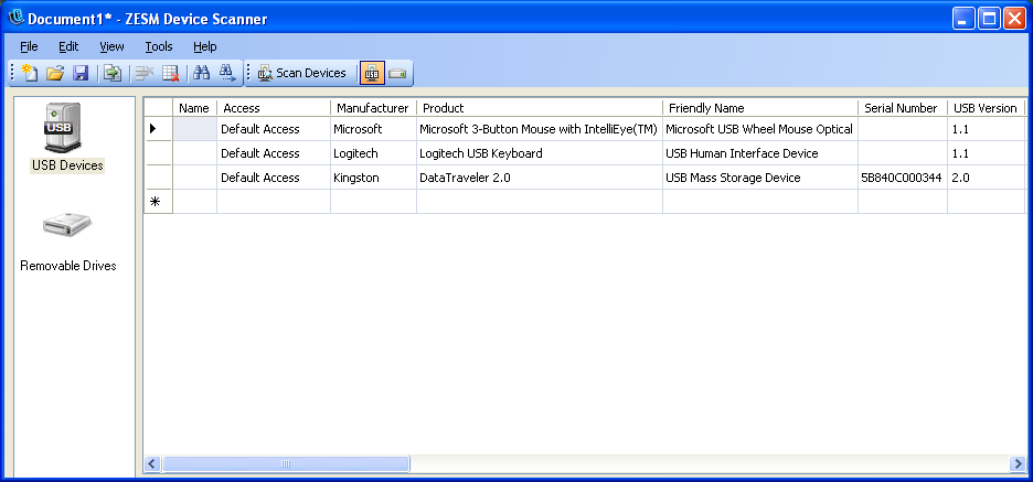 USB devices that are removable storage devices are also displayed in list. To qualify as a removable storage device, a USB device must be a mass storage device and have a serial number.
