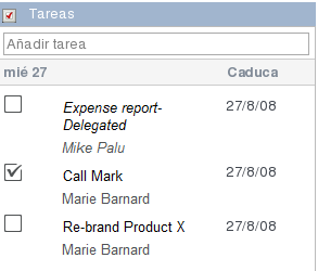 Las tareas también se pueden marcar como completadas en la carpeta Lista de tareas. Consulte la Sección 5.3.2, Seguimiento del estado de finalización de las tareas para obtener más información.
