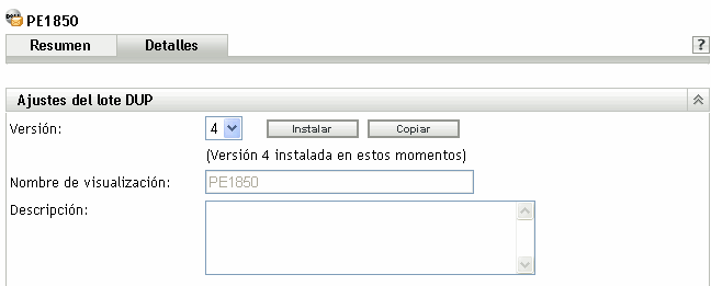 Haga clic en el enlace subrayado de la columna Nombre correspondiente a la copia del paquete de actualización de Dell cuyo contenido quiera modificar.