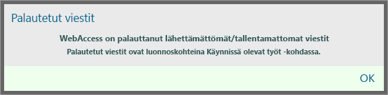 Kun käynnistät WebAccessin ja ohjelma palauttaa 2–5 automaattisesti tallennettua viestiä, näkyviin tulee seuraava sanoma:
