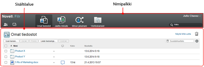 nähdäksesi ajan tasalla olevan näkymän Filr-sivustolla tapahtuneista viimeisimmistä muutoksista.