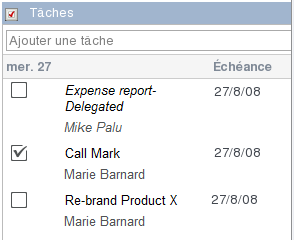 Les tâches peuvent également être marquées comme effectuées dans le dossier Liste des tâches. Pour plus d'informations, reportez-vous à la Section 5.3.2, Suivi de l'achèvement des tâches.