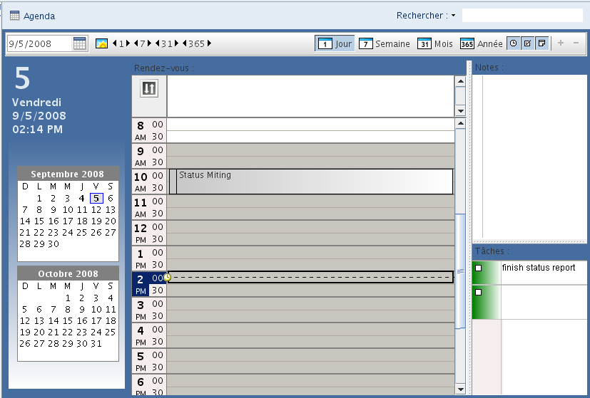 La vue Sous forme d'agenda affiche tous les éléments planifiés qui sont sauvegardés dans un dossier particulier. Elle est utile si vous organisez tous vos rendez-vous et les autres éléments d'un projet spécifique dans un dossier.