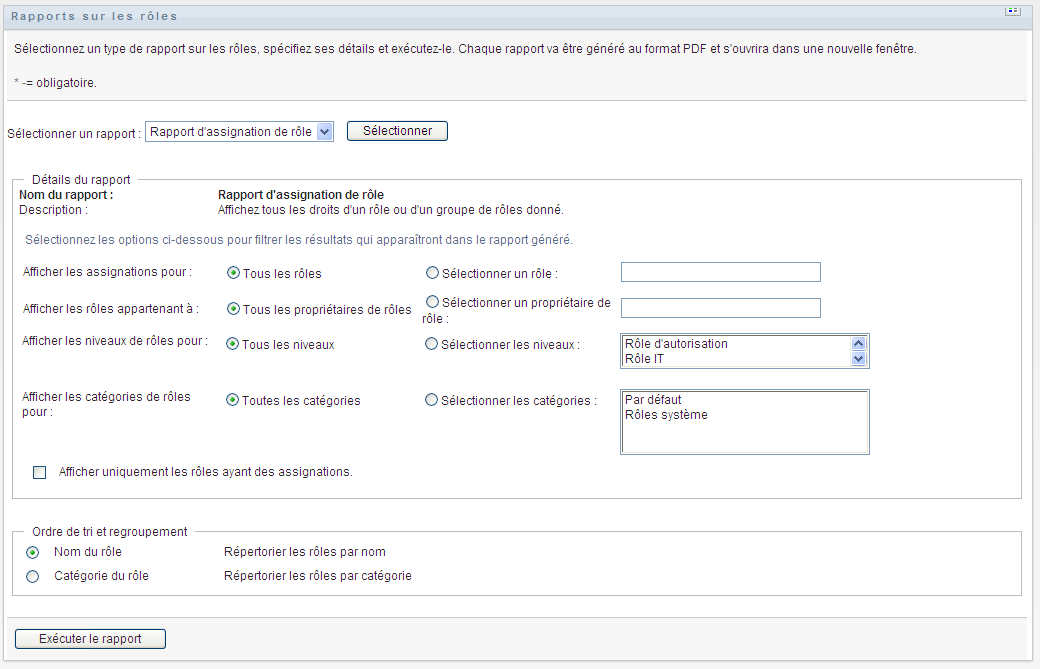 Cliquez sur pour filtrer le rapport en vue d'inclure uniquement les rôles qui ont été assignés.
