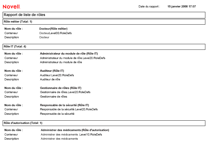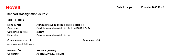 Figure 18-2 Exemple de rapport d'assignations de rôle