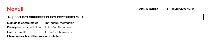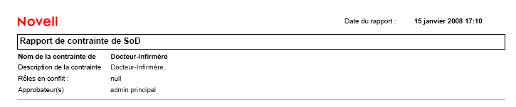 Figure 18-3 Exemple de rapport de contraintes SoD