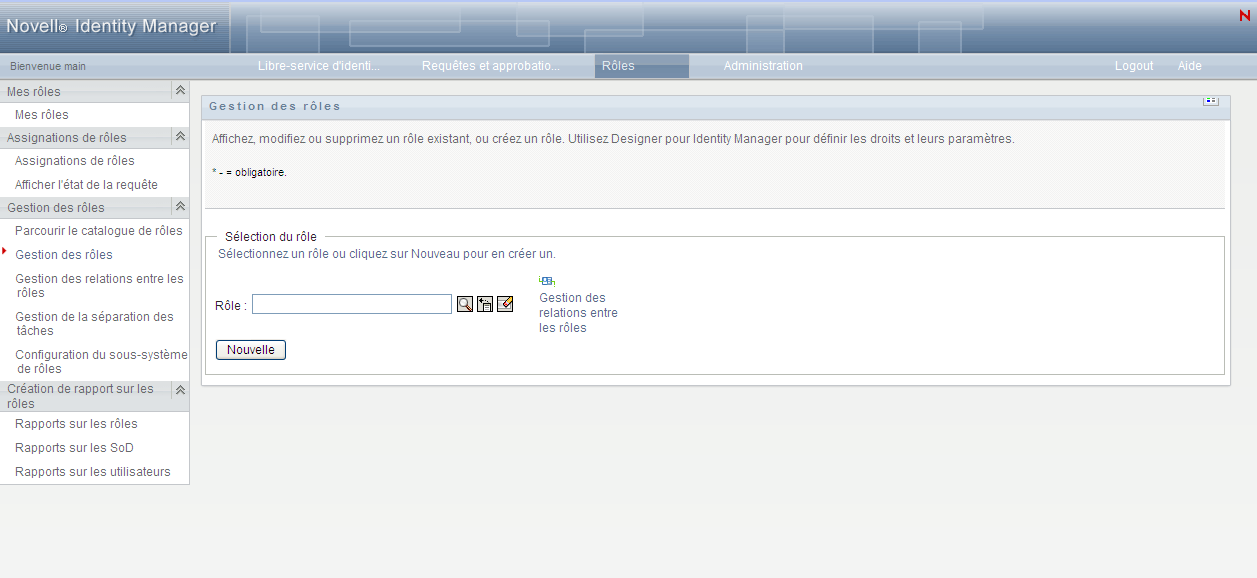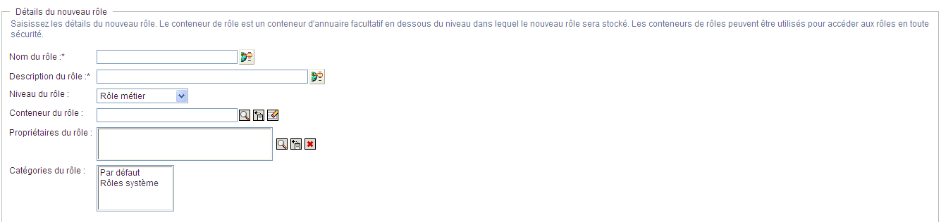 L'application utilisateur vous invite à indiquer le dans la section de la page Gérer les rôles. Pour plus d'informations sur chacun des champs de cette section, reportez-vous au Tableau 17-2, Détails du rôle.