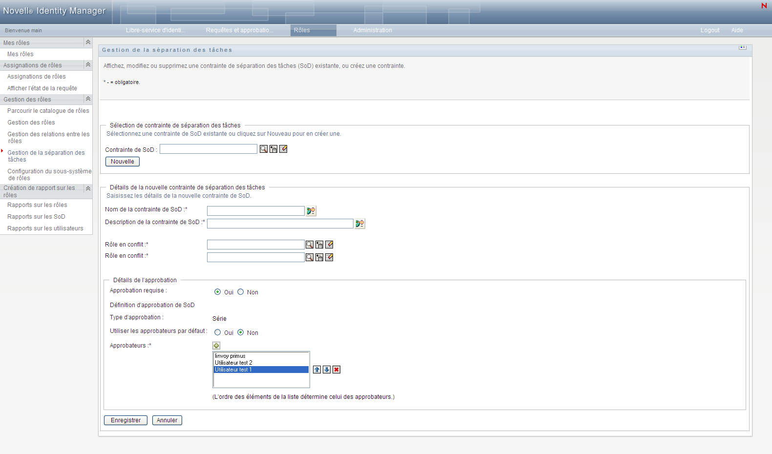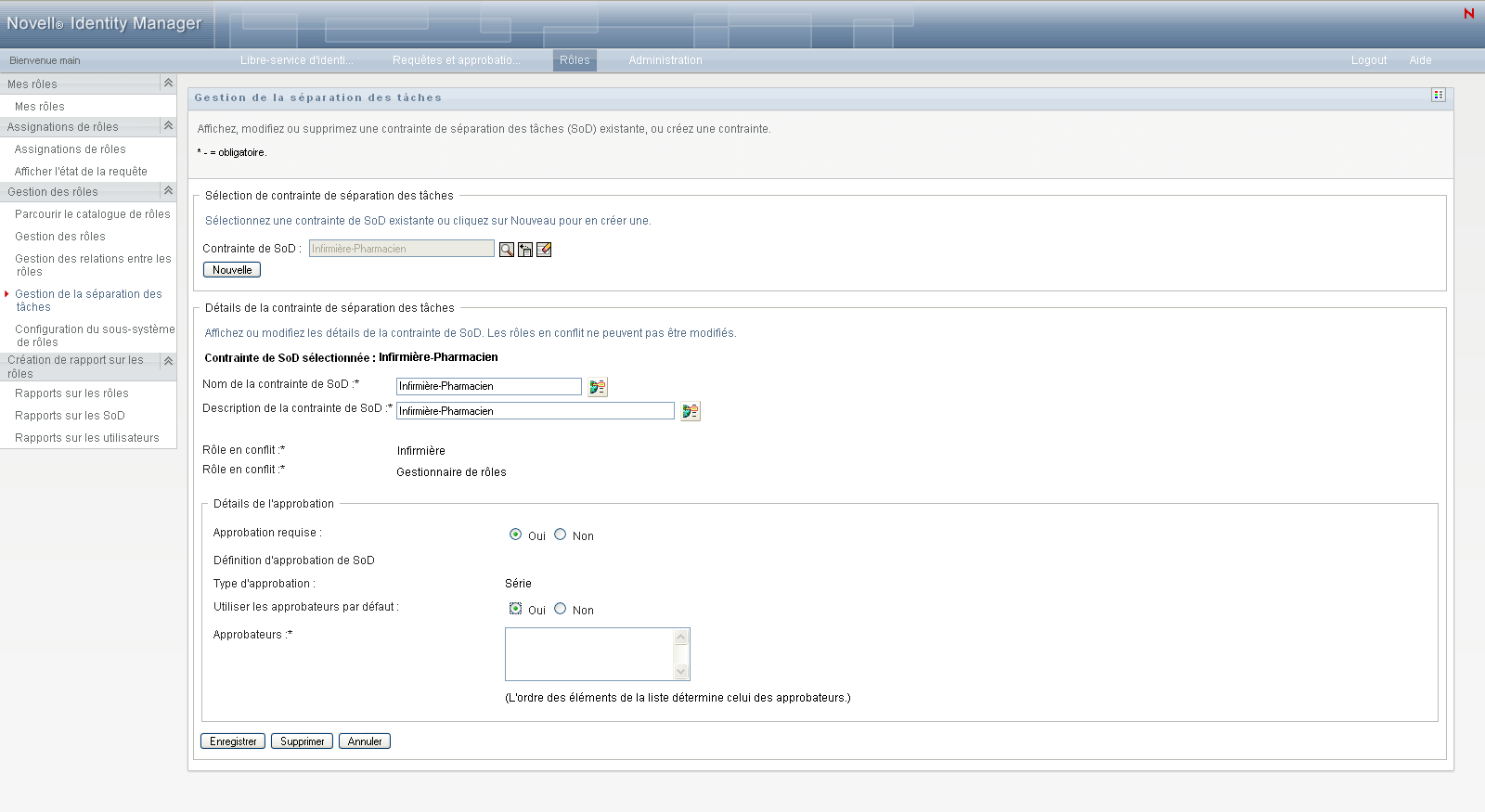Pour plus d'informations sur comment compléter les champs, reportez-vous au Tableau 17-5, Détails des contraintes SoD et au Tableau 17-6, Détails d'approbation.