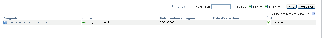 Filtrage par source et assignation de rôle (accessible via l'opération Mes rôles)