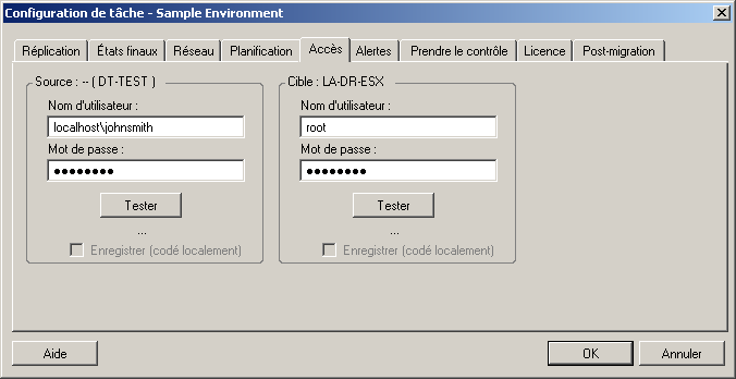 Pour qu'une tâche de migration s'exécute correctement, vous devez spécifier des références valides pour votre source et votre cible.