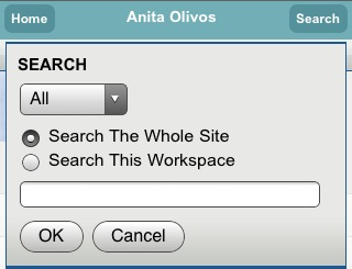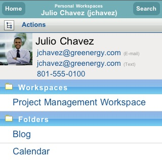 You can navigate to a user’s personal workspace by selecting the user’s linked name that appears next to any entry that user has posted. Or, you can search for the user as described in Section 15.4.1, Searching the Mobile Interface.