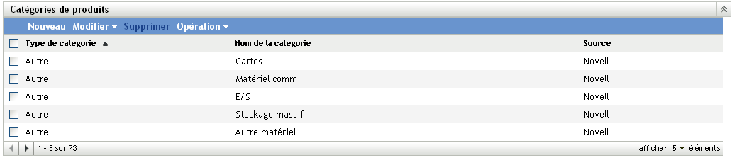 Type de catégorie : la catégorie du produit (par exemple, CPU ou CD-ROM). Ces types sont prédéfinis.