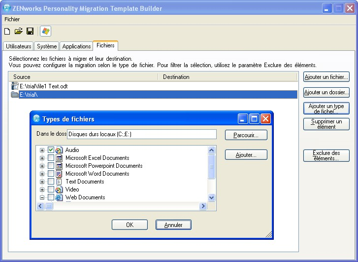 Cliquez sur pour ajouter les types de fichiers que vous voulez faire migrer.