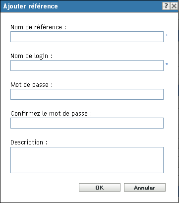 Dans le tableau de bord , cliquez sur > pour afficher la boîte de dialogue Ajouter référence.