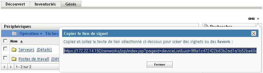 Si vous êtes logué au Centre de contrôle ZENworks lorsque vous cliquez sur un signet, l'emplacement s'affiche immédiatement.