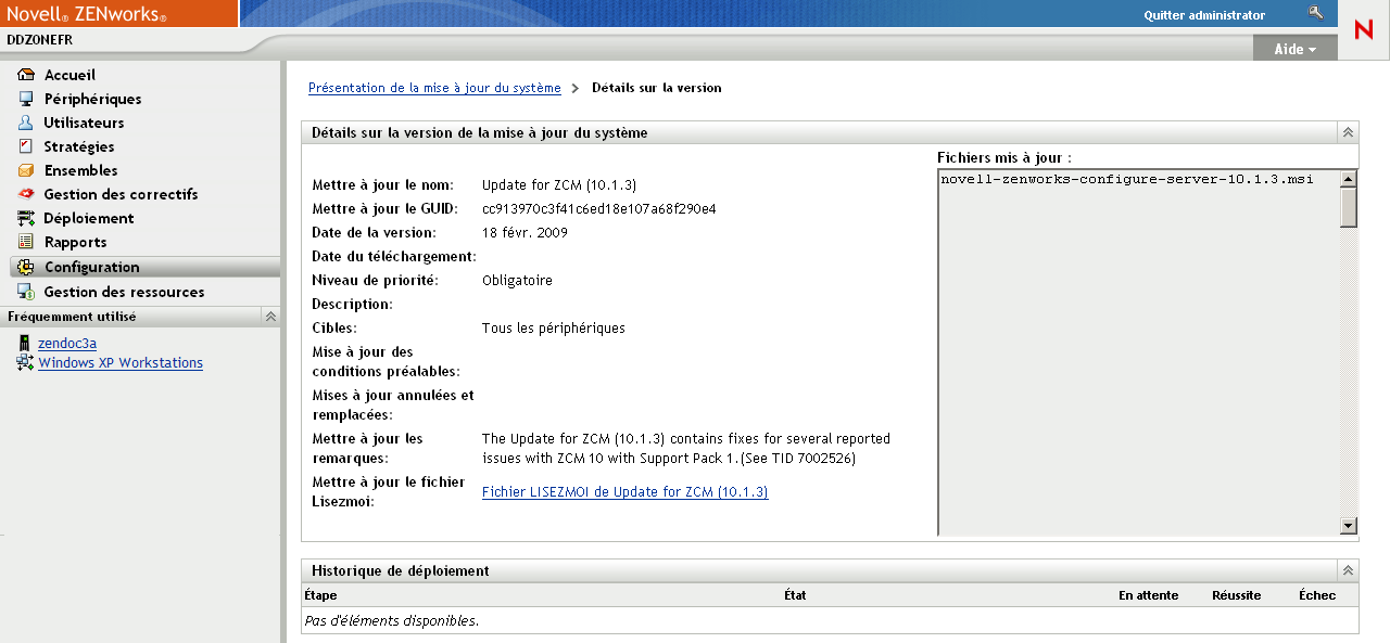 1. Dans le Centre de contrôle ZENworks®, cliquez sur Configuration dans le volet de gauche, puis sur l'onglet Mises à jour système.