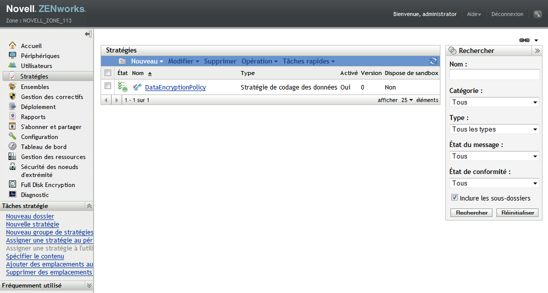 Après avoir créé la stratégie de chiffrement de disque, vous devez l'assigner à des périphériques.