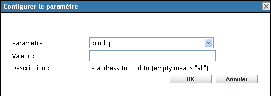 La liste déroulante contient tous les paramètres disponibles de ZENworks Linux Management. Si tous les modules ne sont pas installés sur un périphérique, les paramètres qui contrôlent ce module ne seront pas utilisés par le daemon zmd. Par exemple, si vous n'installez pas le module de contrôle à distance sur un périphérique, tous les paramètres qui configurent ce module seront ignorés.