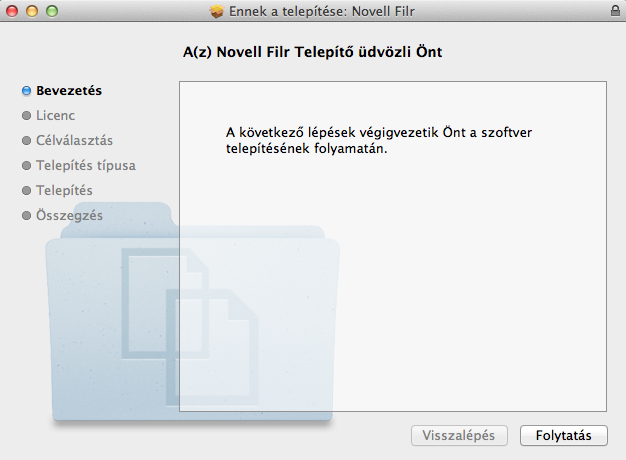 A letöltés után nyissa meg a NovellFilr-verzió.pkg fájlt.