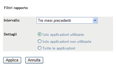 Tutti gli utilizzi: rapporti incentrati sull'utilizzo totale dell'applicazione, compresi locale, servito, applicazioni Web e utilizzo rete.