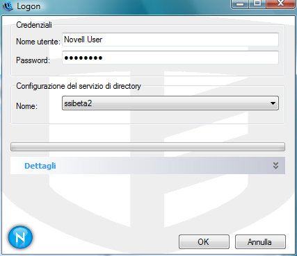 Immettere nome utente e password per il dominio o per l'albero di eDirectory, quindi fare clic su .