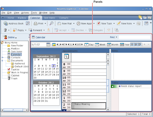 A panel is a customized view of information in GroupWise. For example, the default Home folder has an Unread Messages panel that displays a list of items you have not read. The Tasklist panel is another default panel in the Home folder. The Tasklist panel displays items that are in your Tasklist folder.