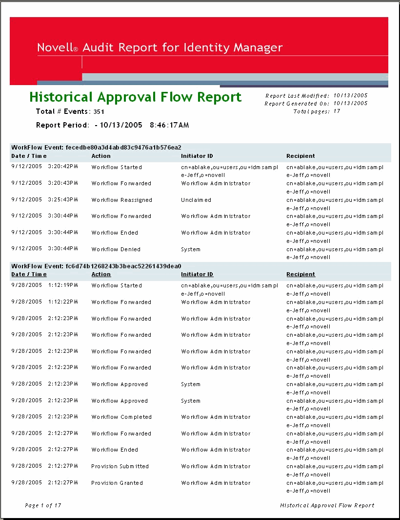図 C-2 Historical Approval Flow Report (認証フロー履歴レポート)