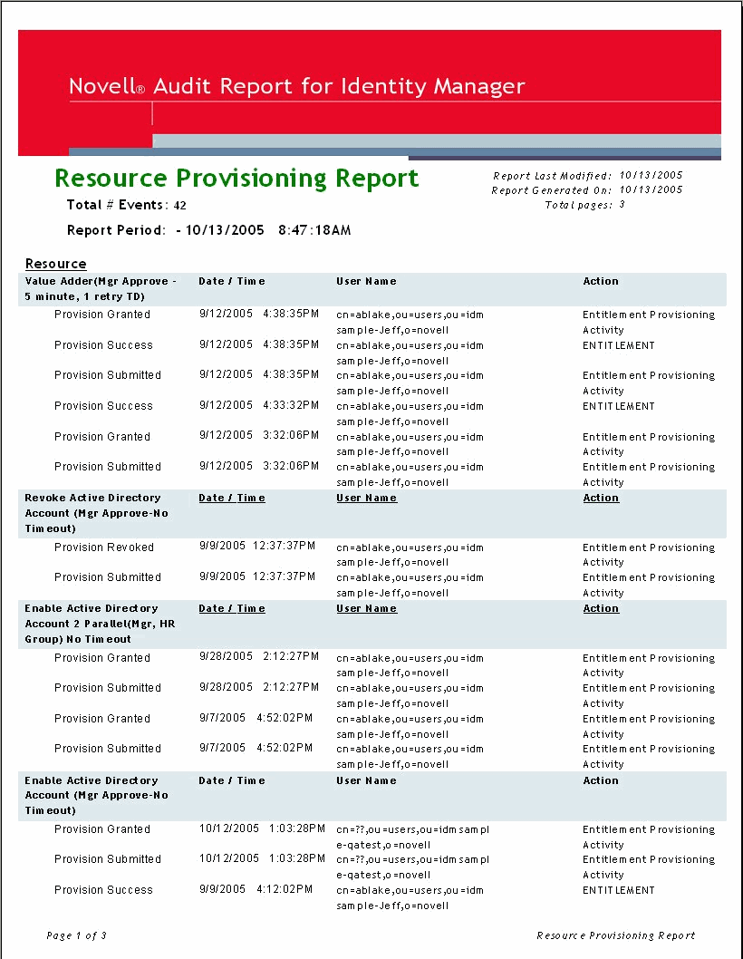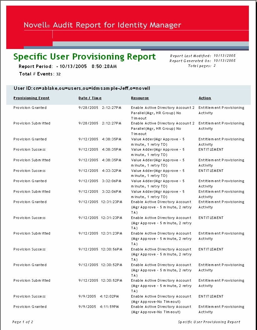 図 C-7 Specific User Provisioning report (特定ユーザのプロビジョニングレポート)