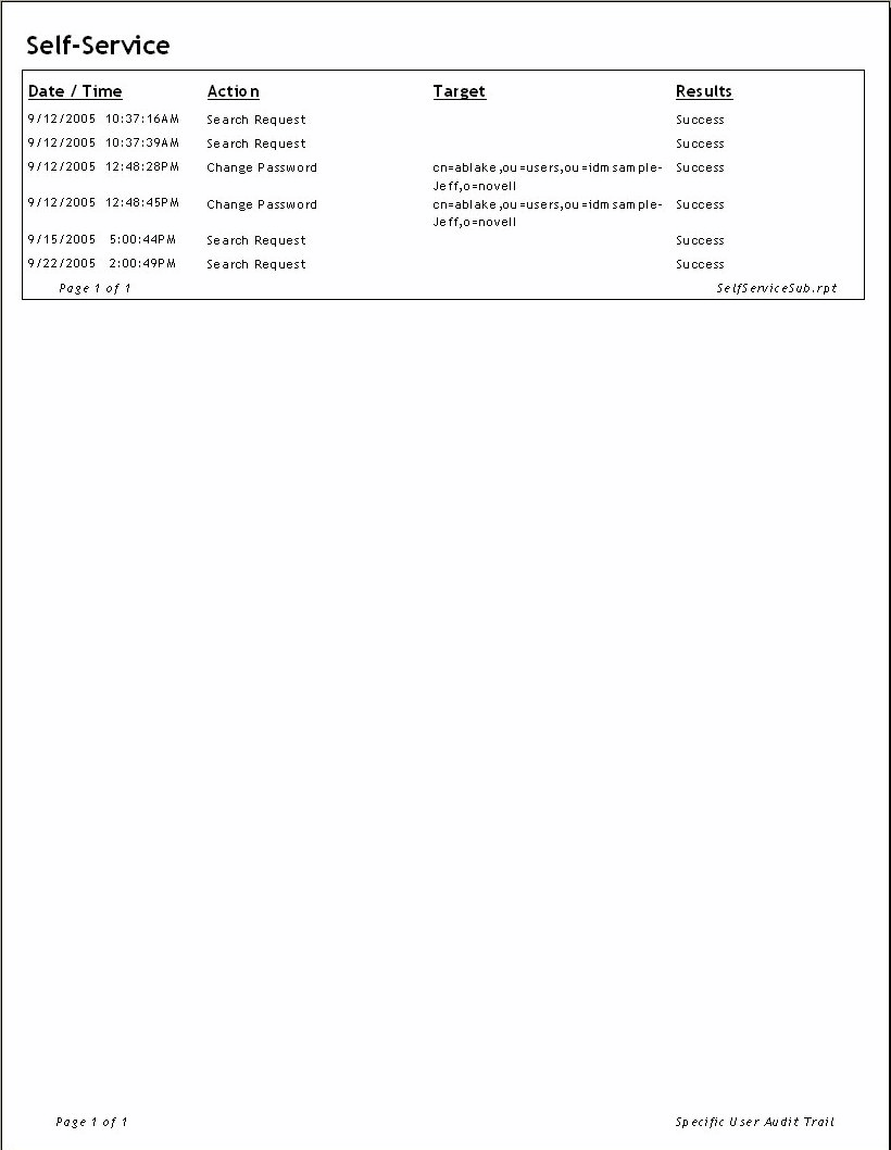 ここでは、Novell Auditレポートの表示例を示します。実行できるレポートは次のとおりです。