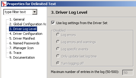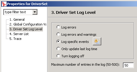 [Driver Set Log Level (ドライバセットのログレベル)]、[特定のイベントを記録]の順に選択します。