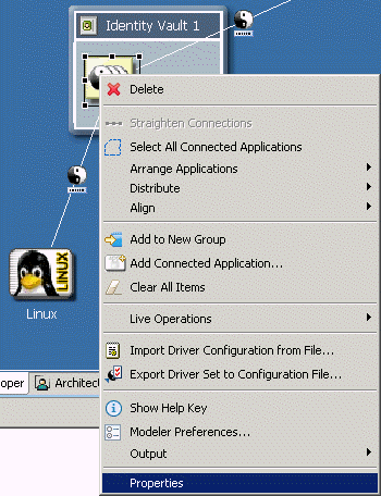 Designerで、ドライバを右クリックしてから[プロパティ]を選択します。