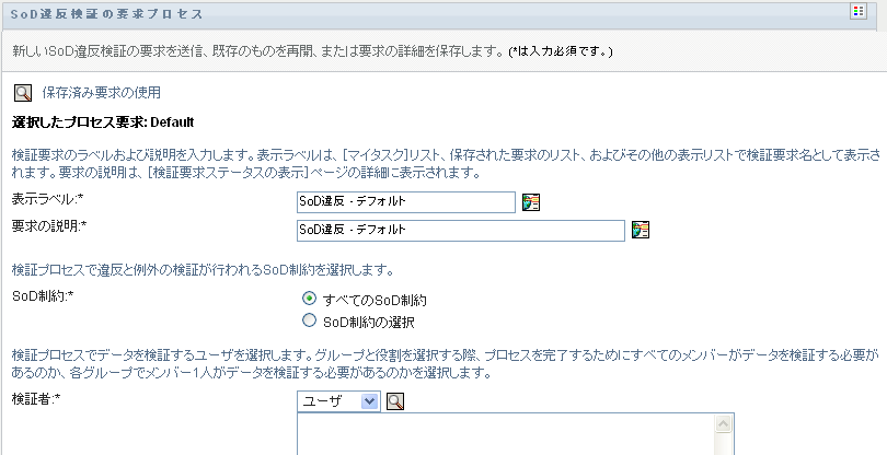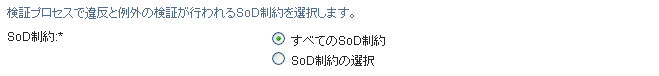 検証者はレポートをレビューするために、選択した制約への権限を持っている必要はありません。SoD検証プロセスに選択された検証者がSoD制約を参照する権限を持っていない場合でも、制約に対する違反および例外を表示したレポートを参照できます。