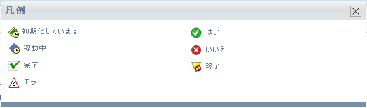 凡例には、[]タブで使用されているアイコンの簡単な説明が表示されます。次の図は凡例を示しています。