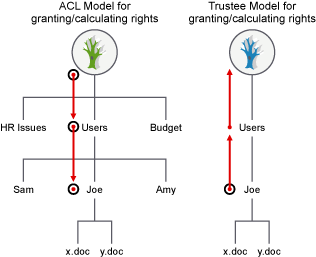 Figure 12-1 Comparison of the Linux ACL Model and the Novell Trustee Model