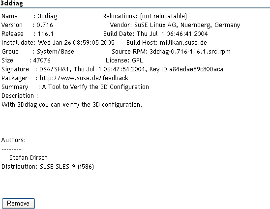 Clicking the link displays the Packing Information page. On this page you can view the following information about each package that is installed on the system: