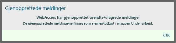Når du starter WebAccess og seks eller flere autolagrede meldinger kan gjenopprettes, vises følgende melding: