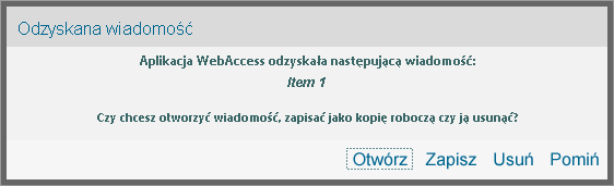 Jeśli po uruchomieniu programu WebAccess zostanie odzyskana tylko jedna automatycznie zapisana wiadomość, zostanie wyświetlony następujący komunikat: