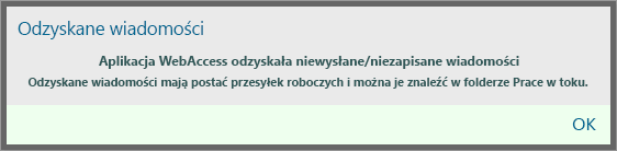 Jeśli po uruchomieniu programu WebAccess istnieją automatycznie zapisane wiadomości, zostanie wyświetlony komunikat. Typ wyświetlonego komunikatu zależy od liczby automatycznie zapisanych wiadomości.