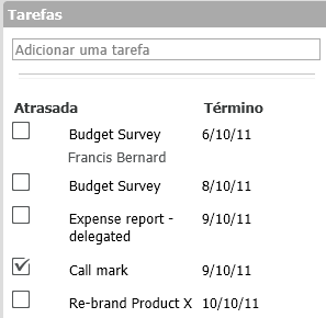 Também é possível marcar tarefas como concluídas na pasta Lista de Tarefas. Consulte a Seção 5.3.2, Monitorando a conclusão da tarefa para obter mais informações.