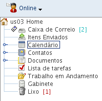 A Lista de Pastas à esquerda da Janela Principal permite organizar os itens do GroupWise criando pastas nas quais armazenar os itens. O número de itens não-lidos é mostrado entre colchetes ao lado de todas as pastas (com exceção das pastas compartilhadas). Ao lado da pasta Itens Enviados, o número entre colchetes mostra quantos itens estão pendentes para envio no modo de Cache.