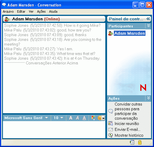 Figure 6-1 Histórico pessoal em uma janela de conversação