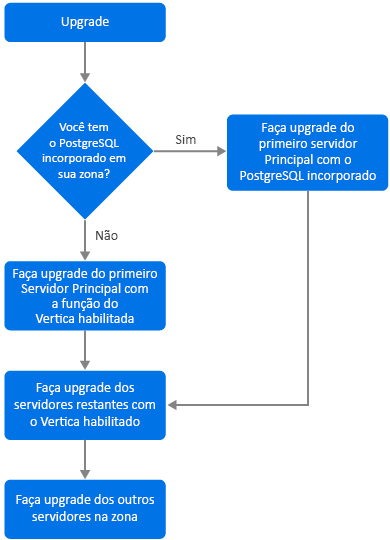 Se o PostgreSQL incorporado estiver presente em sua zona, será obrigatório primeiro fazer upgrade do servidor que tem o banco de dados PostgreSQL incorporado e depois continuar com a Etapa 3.