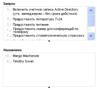 На Рисунок 12-3 показан пример с фильтрами "Запрос" и "Назначено":