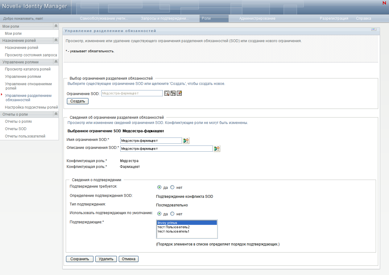 Ограничение SoD - это правило, согласно которому две роли одного уровня становятся взаимоисключающими. Если пользователю назначена одна роль, ему не может быть назначена вторая роль пары, если для данного ограничения не разрешено исключение. Вы можете определить, будут ли исключения для ограничения разрешены всегда или только после выполнения процедуры утверждения.