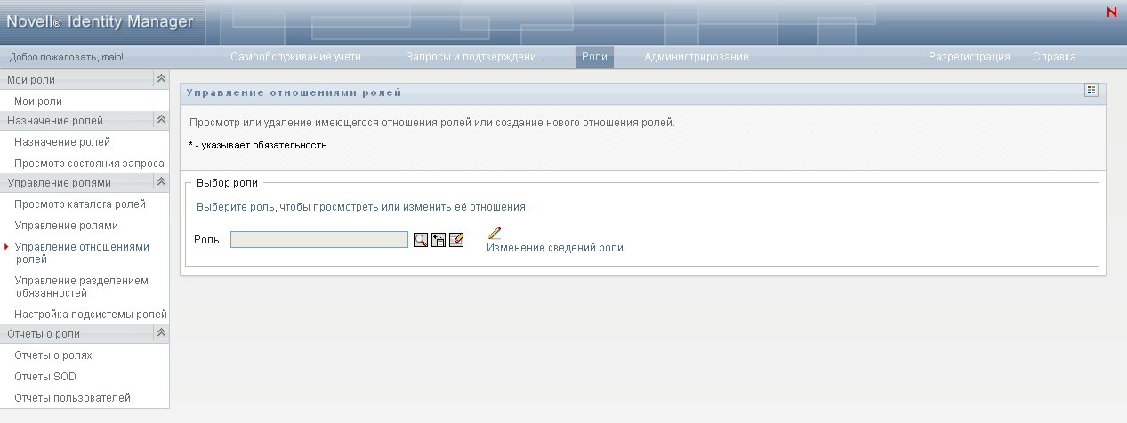Роли самого верхнего уровня (бизнес-роли) могут содержать роли нижних уровней. Они не могут входить в состав других ролей. Если Вы выбрали роль самого верхнего уровня, то на странице "Отношения ролей" сможете добавить только отношение "Новые роли более низкого уровня".