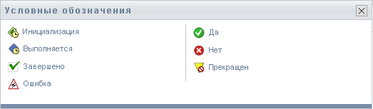 Условные обозначения — это краткое описание значков, используемых на вкладке . Пример условных обозначений представлен на рисунке ниже.