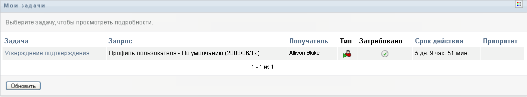 Действие позволяет работать с задачами рабочего процесса, связанными с запросами на ресурсы, запросами функций и запросами на подтверждение. В некоторых случаях пользовательский интерфейс может отличаться в зависимости от того, какой тип задачи рабочего процесса вы выбрали для работы. Для запросов на подтверждение действие показывает только те задачи, для которых вы назначены подтвердителем.