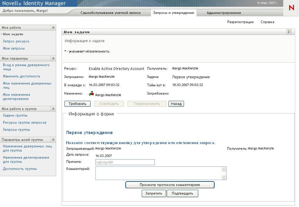 Создание пользовательских комментариев для рабочего процесса может быть отключено его проектировщиком. Дополнительные сведения см.: Identity Manager User Application. Руководство по проектированию.