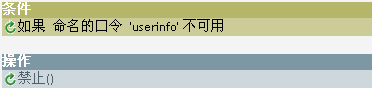 策略构建器允许调用命名口令。 新建一条规则并选择命名口令作为条件。 设置的操作取决于命名口令是否可用。 下面的示例说明,当命名口令用户信息不可用时,事件将被禁止。
